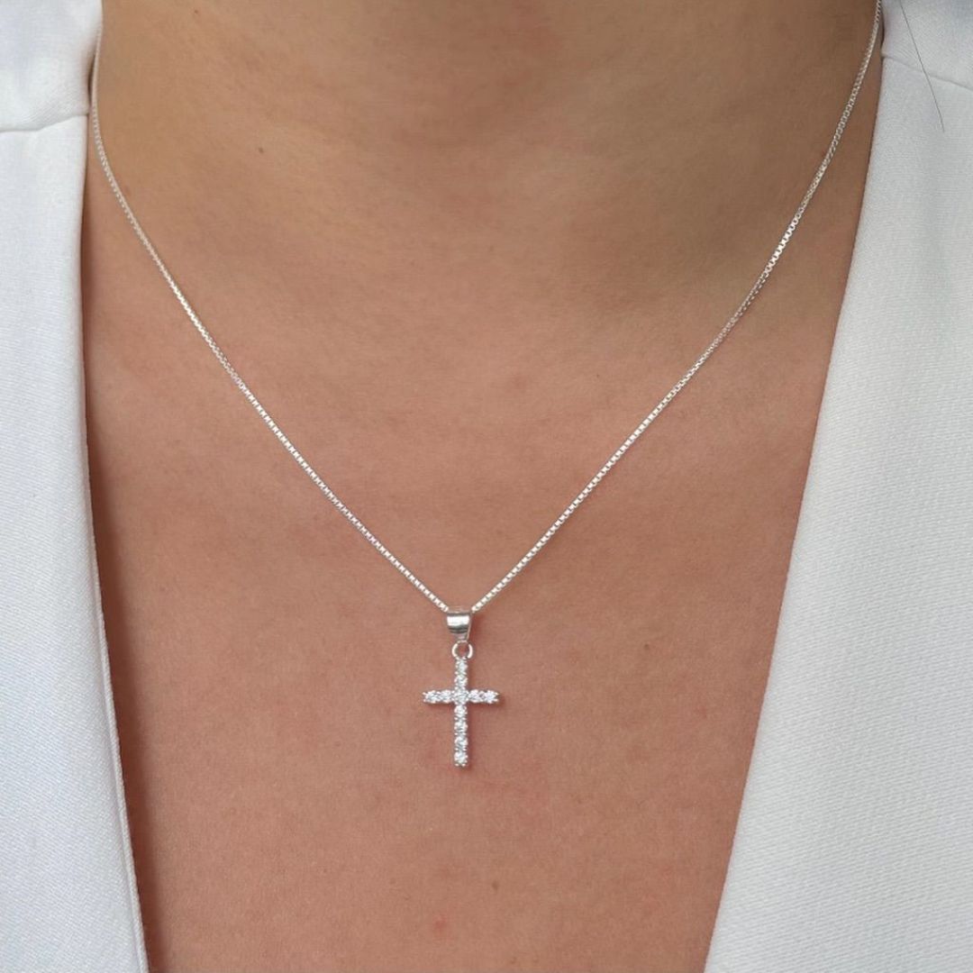 Cadena y dije de cruz en plata 925 con micro circones de cristal