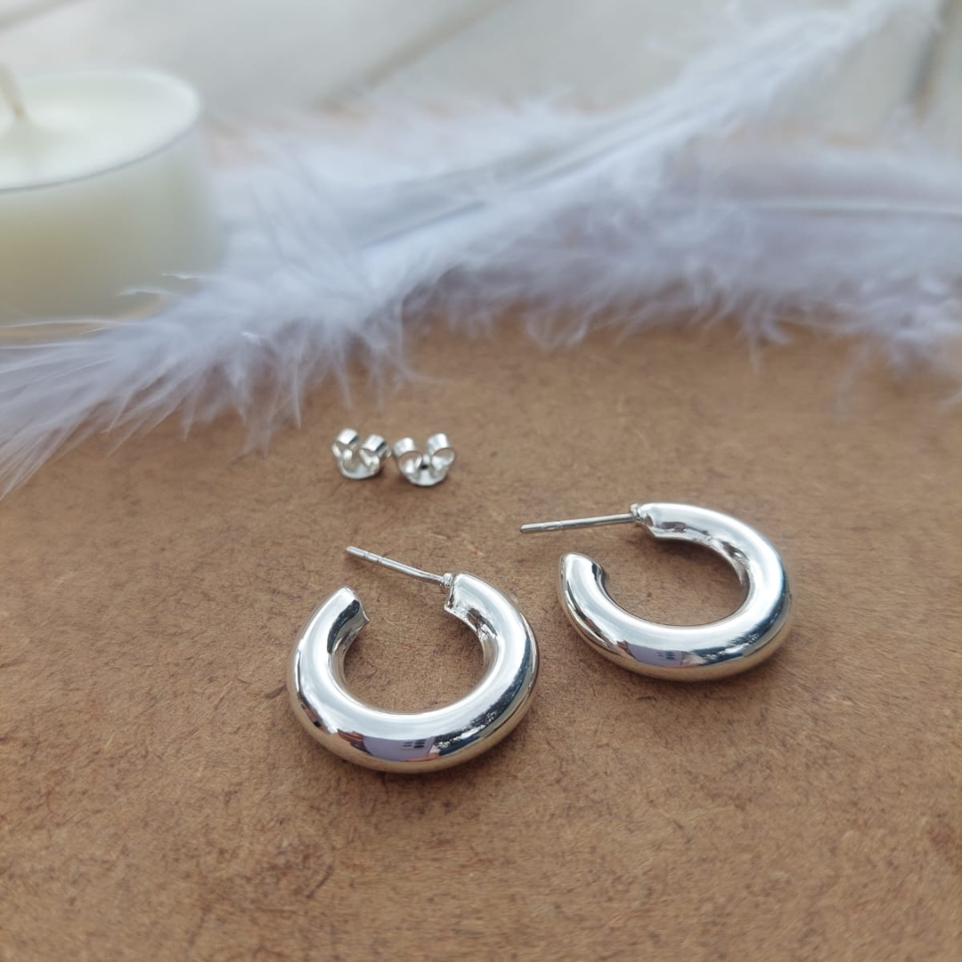 Aretes tipo argolla en plata 925 con diseño tubular y acabado pulido espejo, que resalta su brillo y elegancia. Un accesorio clásico y versátil, ideal para complementar tanto looks casuales como sofisticados, aportando un toque moderno y atemporal.