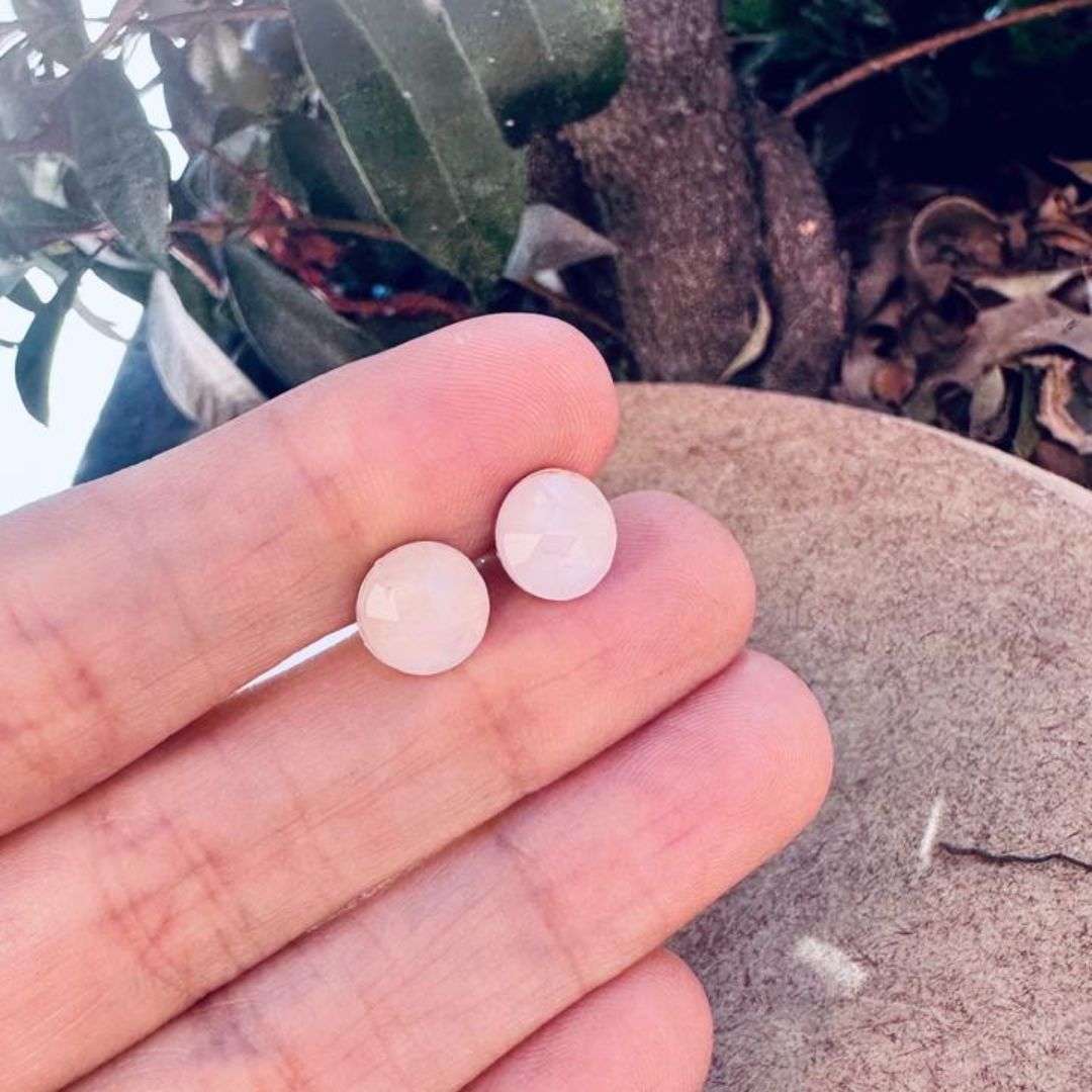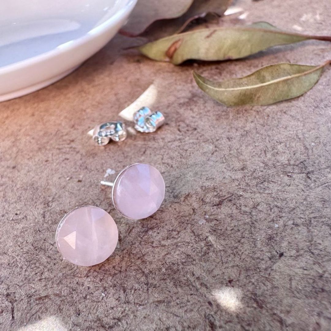 Aretes tipo topo en plata 925 con piedra natural de cuarzo rosado facetado. Su delicado tono rosa transmite suavidad y armonía, considerado como la piedra del amor y la energía positiva. Una joya sutil y elegante que aporta un toque romántico y femenino a cualquier look.