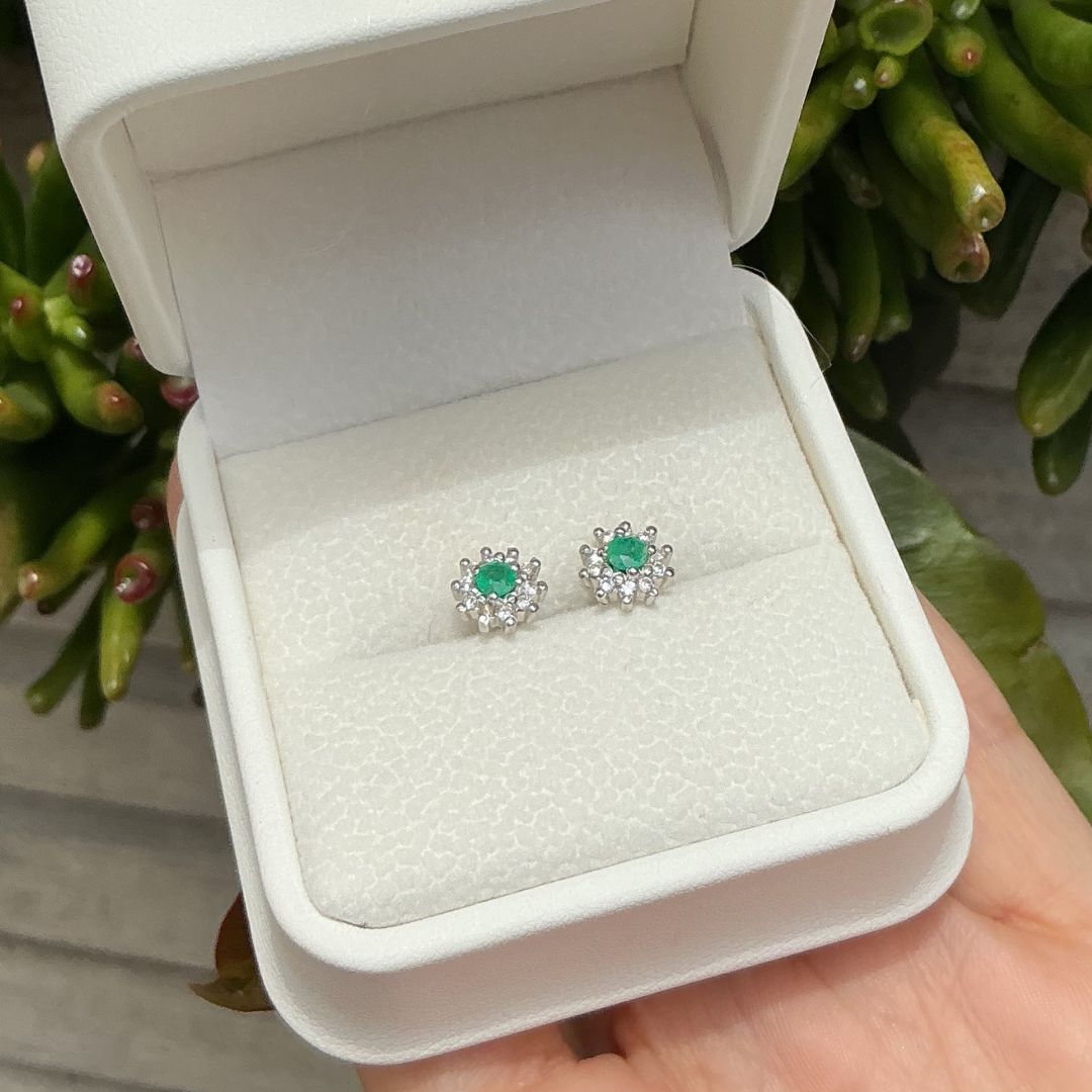 Topos Flor con Esmeralda en plata rodinada