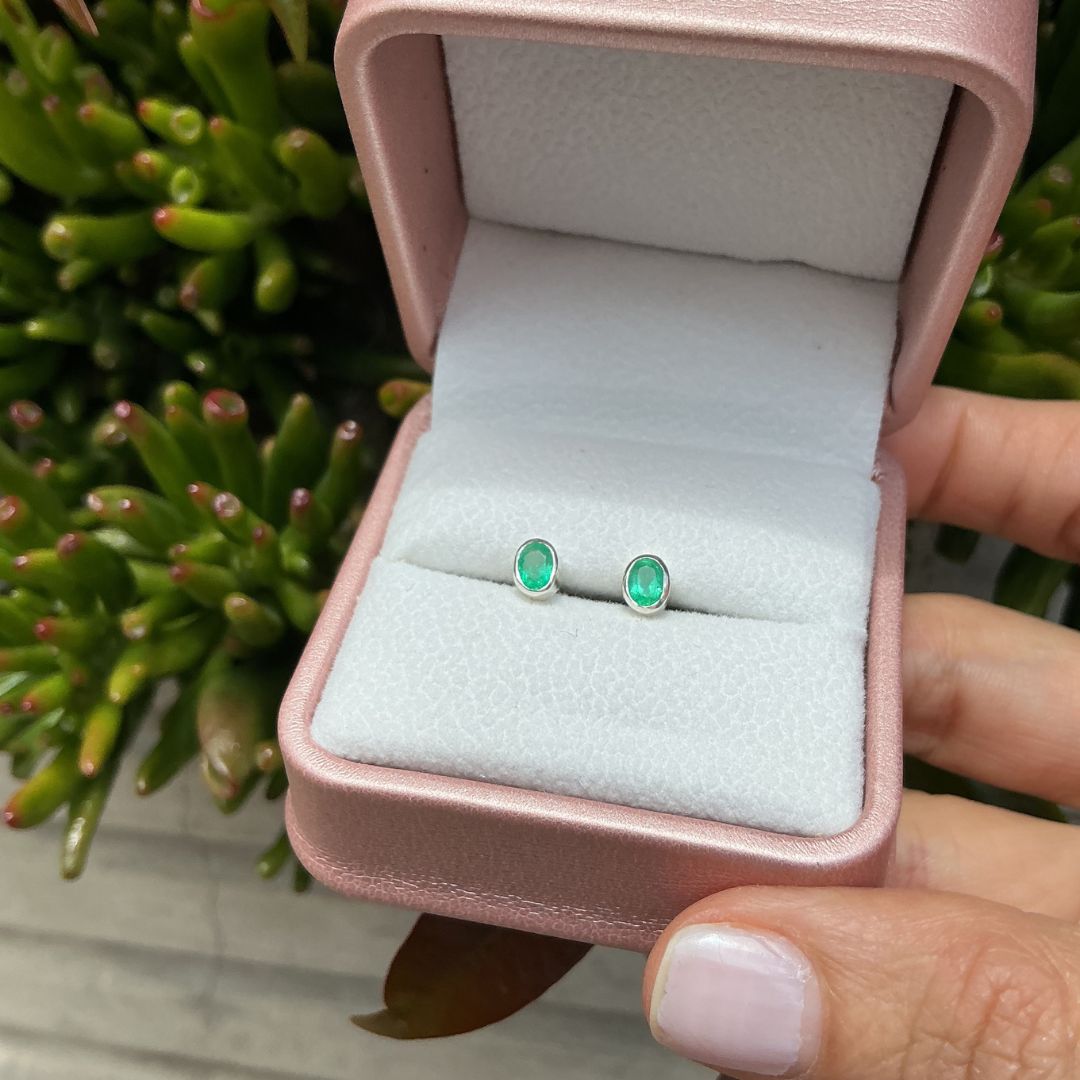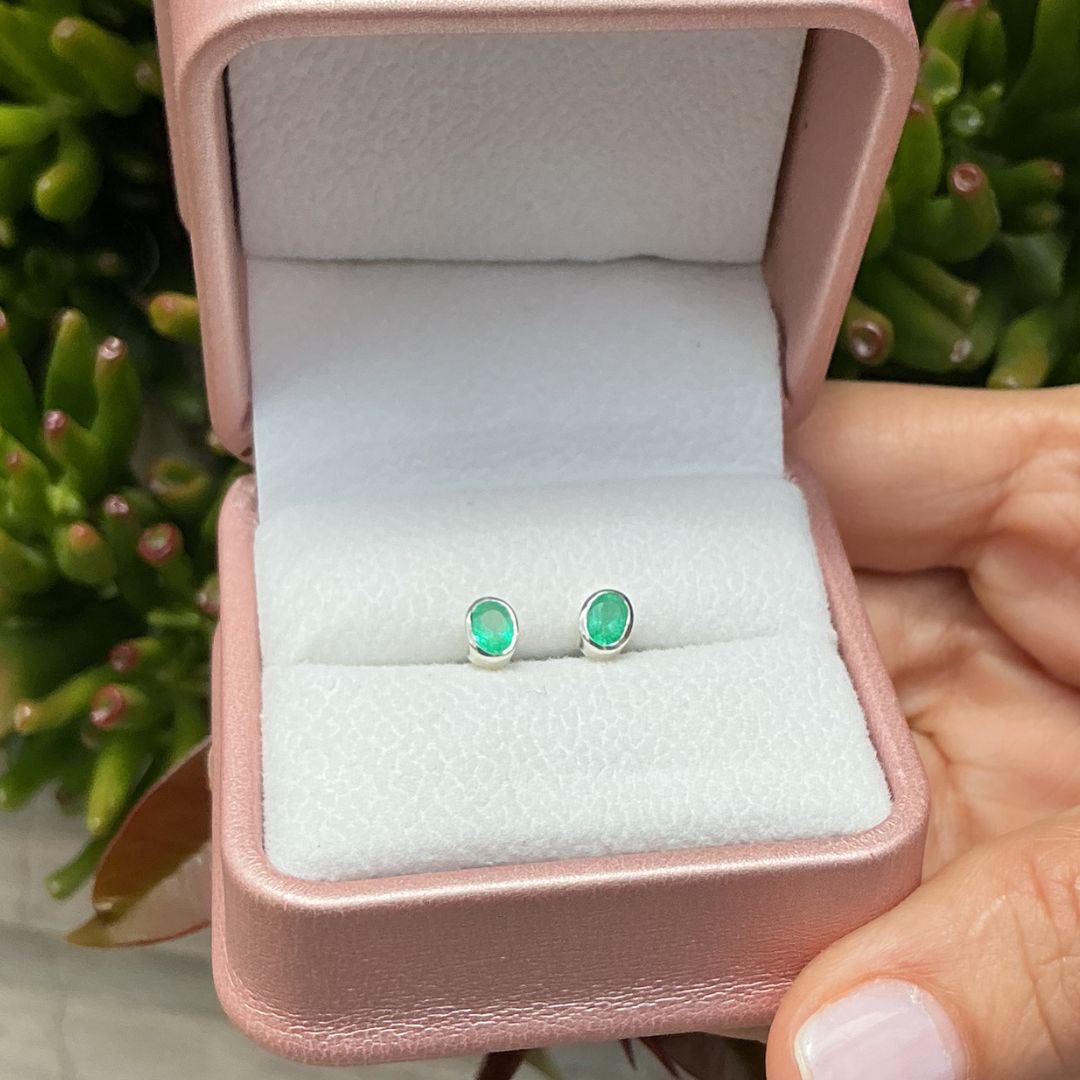 Topos Ovalo de Esmeralda Natural en plata rodinada