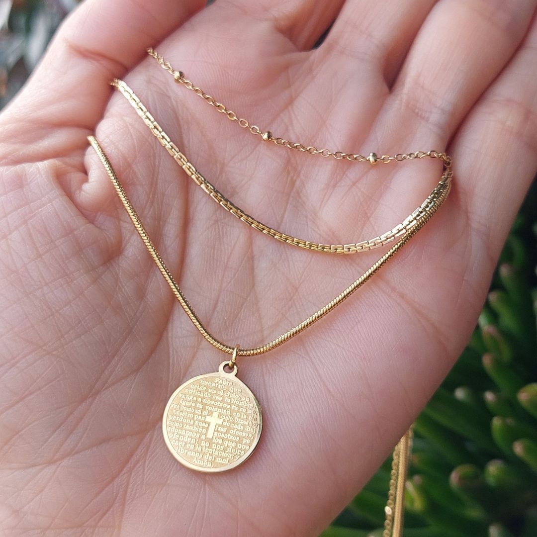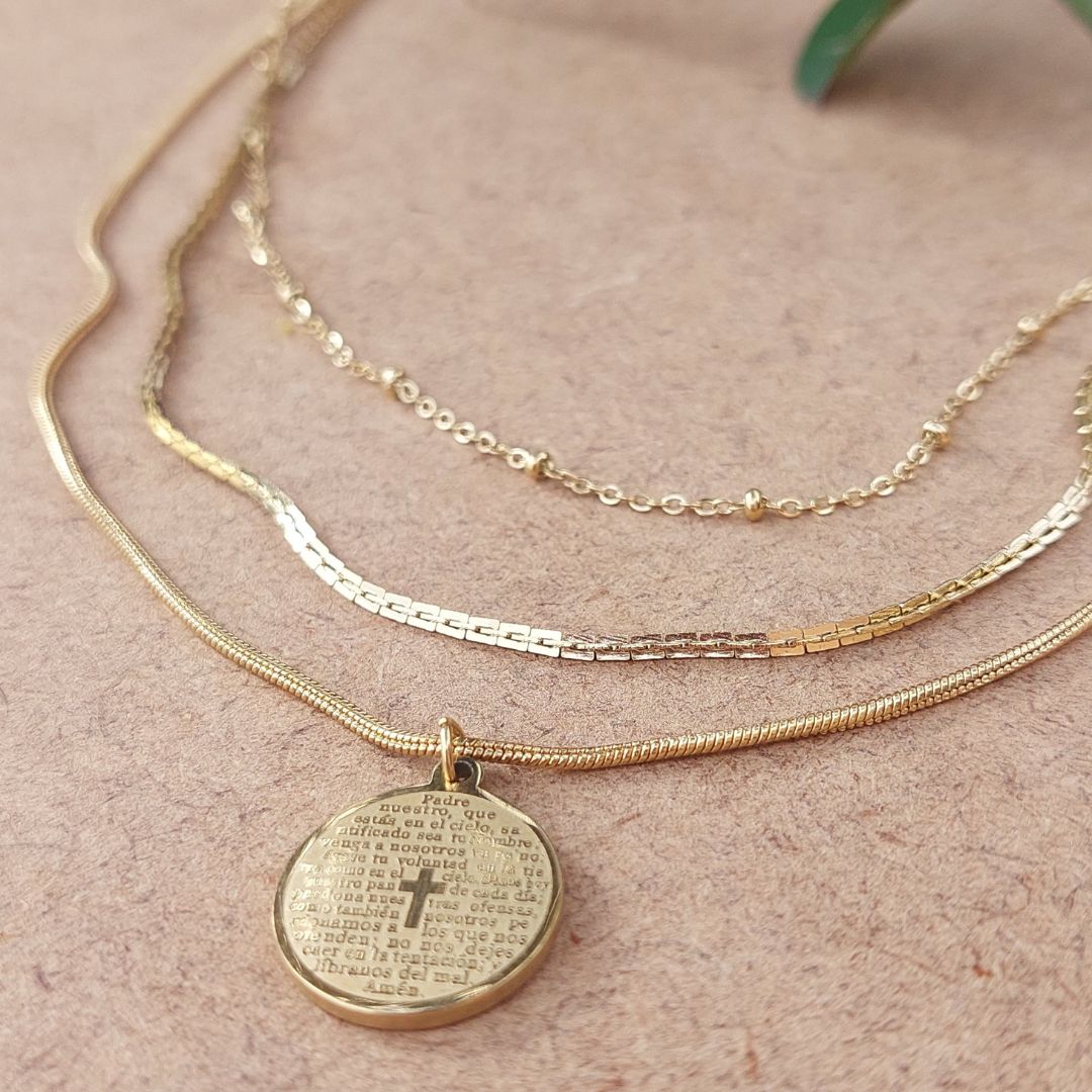 Tres cadenas por separado de 40cm, 45cm, 50cm con medalla de padres nuestro.